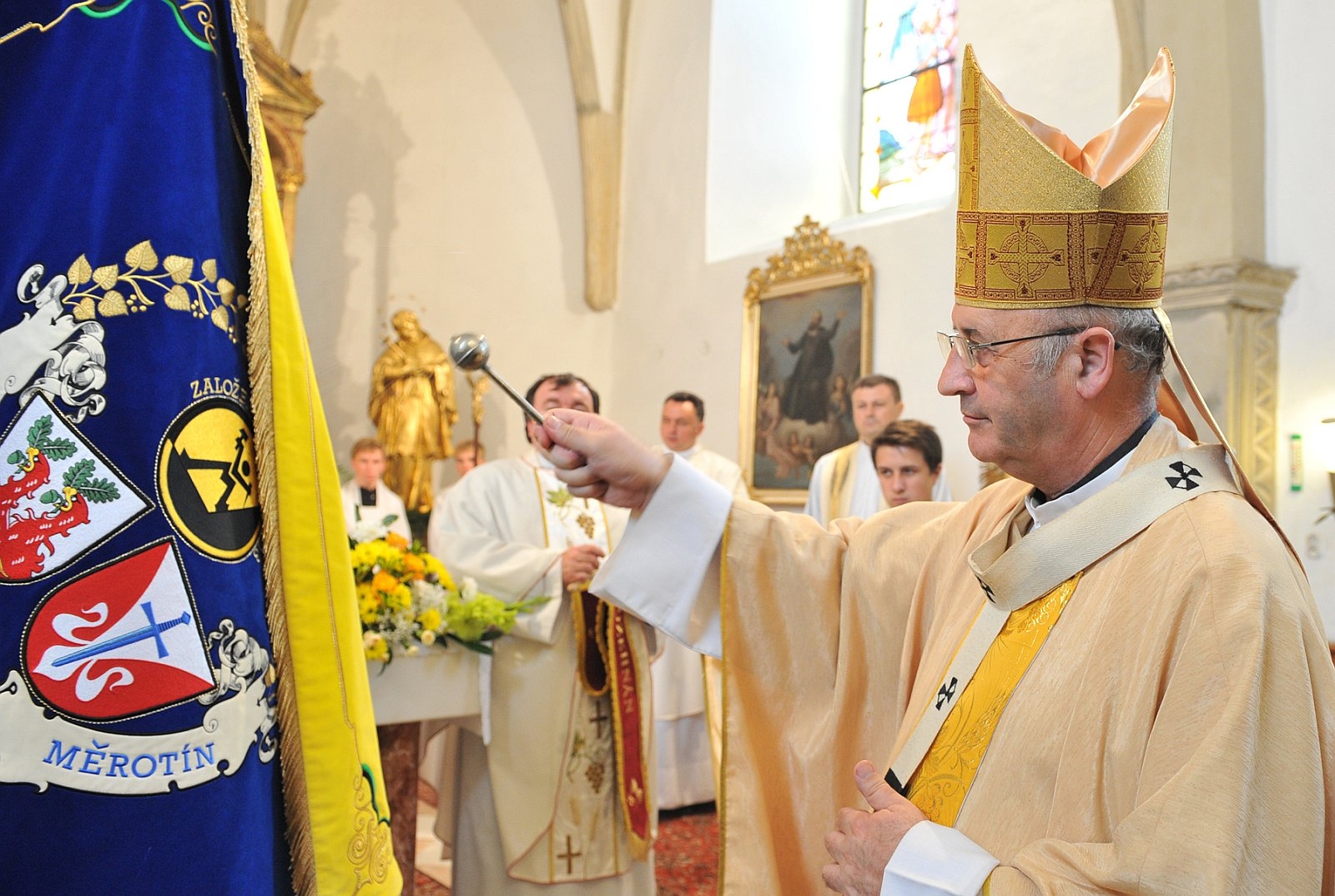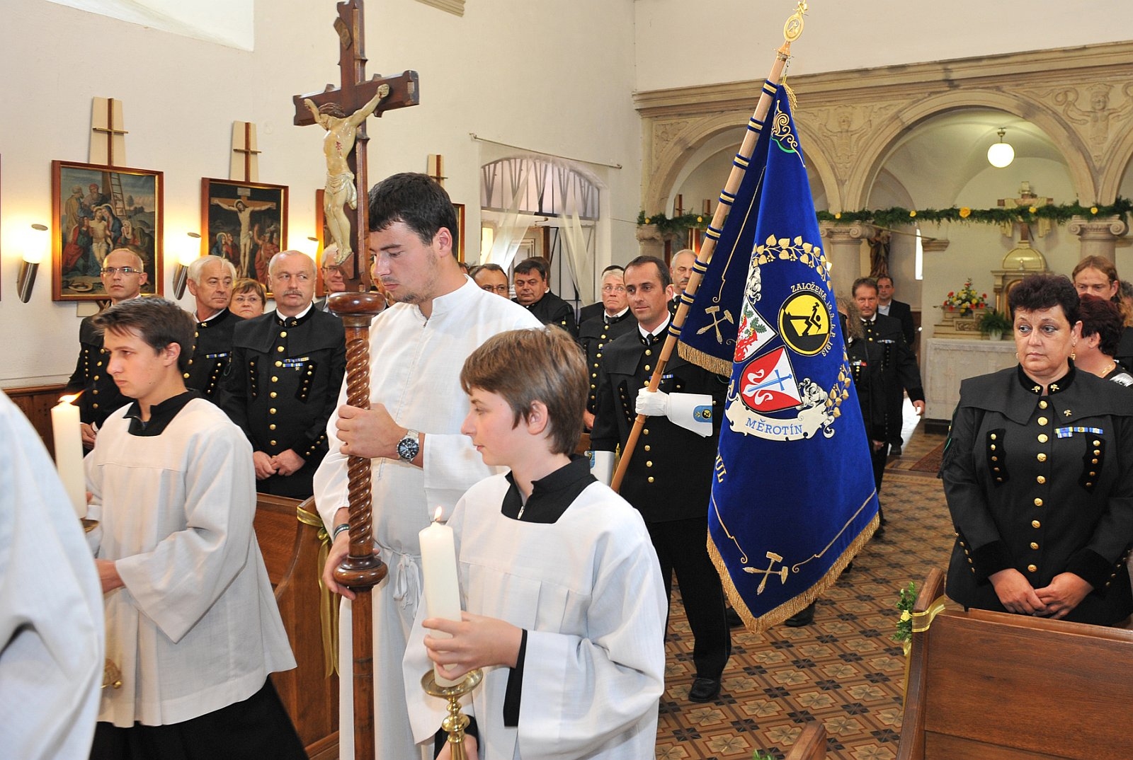 Mons. Jan Graubner blessed the company flag during the ceremony held at the Church of St. Martin in Měrotín.