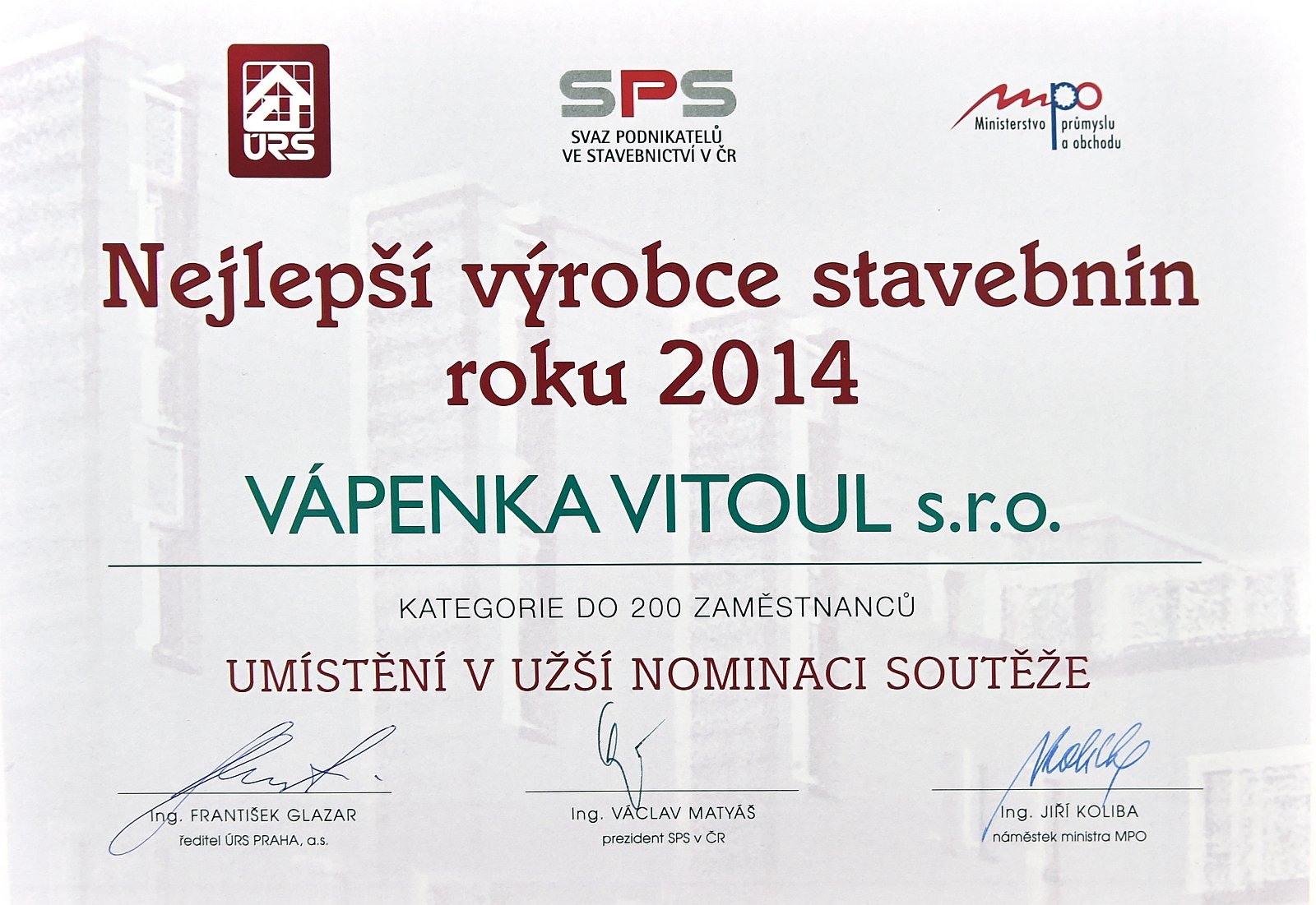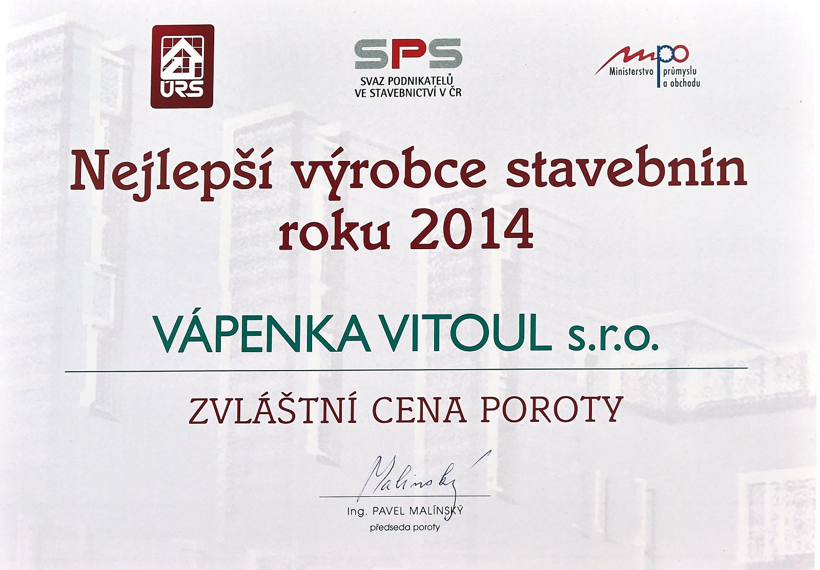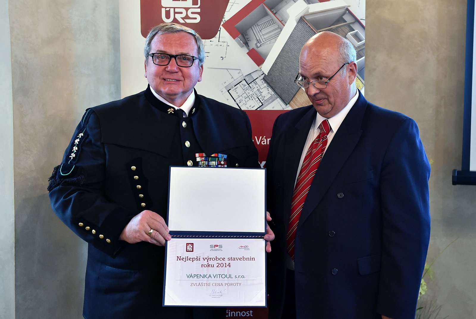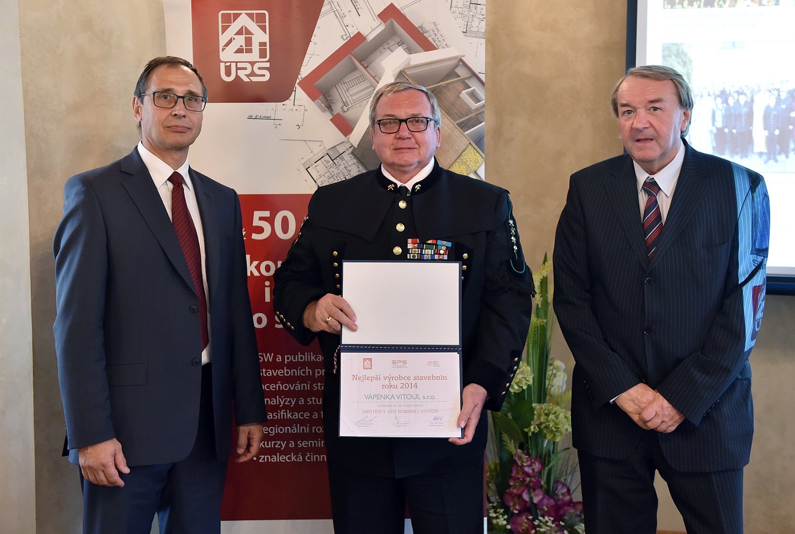 Ing. Ladislav Vitoul taking over the award for being in the narrow selection of The Best Building Material Producer of 2014 competition